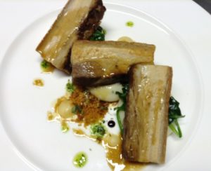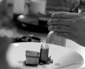 Commencez par céder à la simplicité et à la mer : optez pour la bisque de crabe au poivre basque et à l’huile de citron, ou pour les ravioli au confit d’agneau aux échalotes en crème et au thym, ou laissez-vous tenter par la douceur du terroir en commençant par un foie gras en bocal accompagné de pomme verte, de sa purée de raisins et de noix grillées.