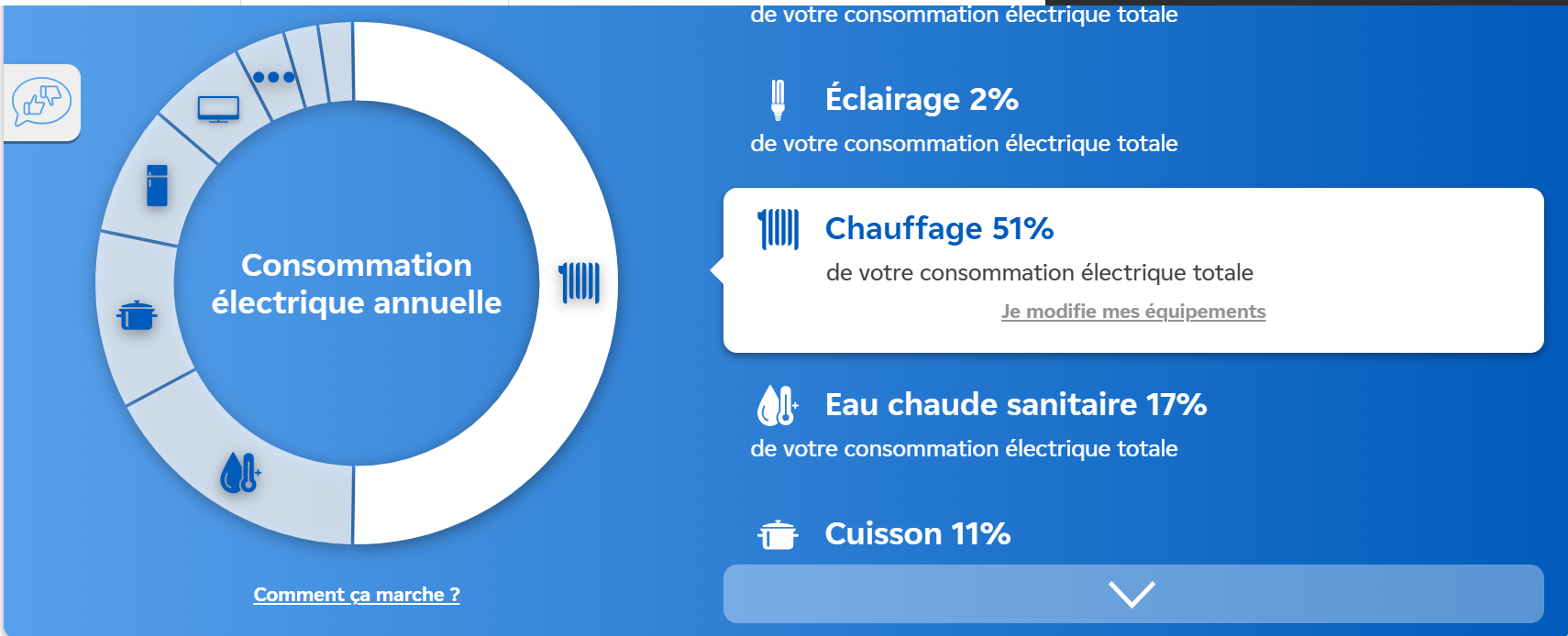 Vous pourrez ainsi suivre votre consommation heure par heure, la comparer à d’autres logements similaires, etc., mais aussi vous renseigner sur les coupures de courant en temps réel.