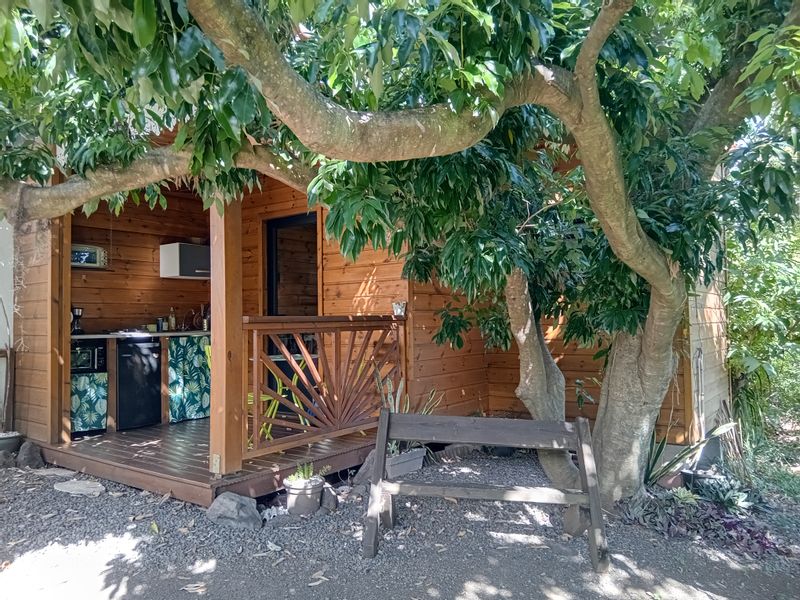 Bungalow dans un jardin typique de la Reunion.